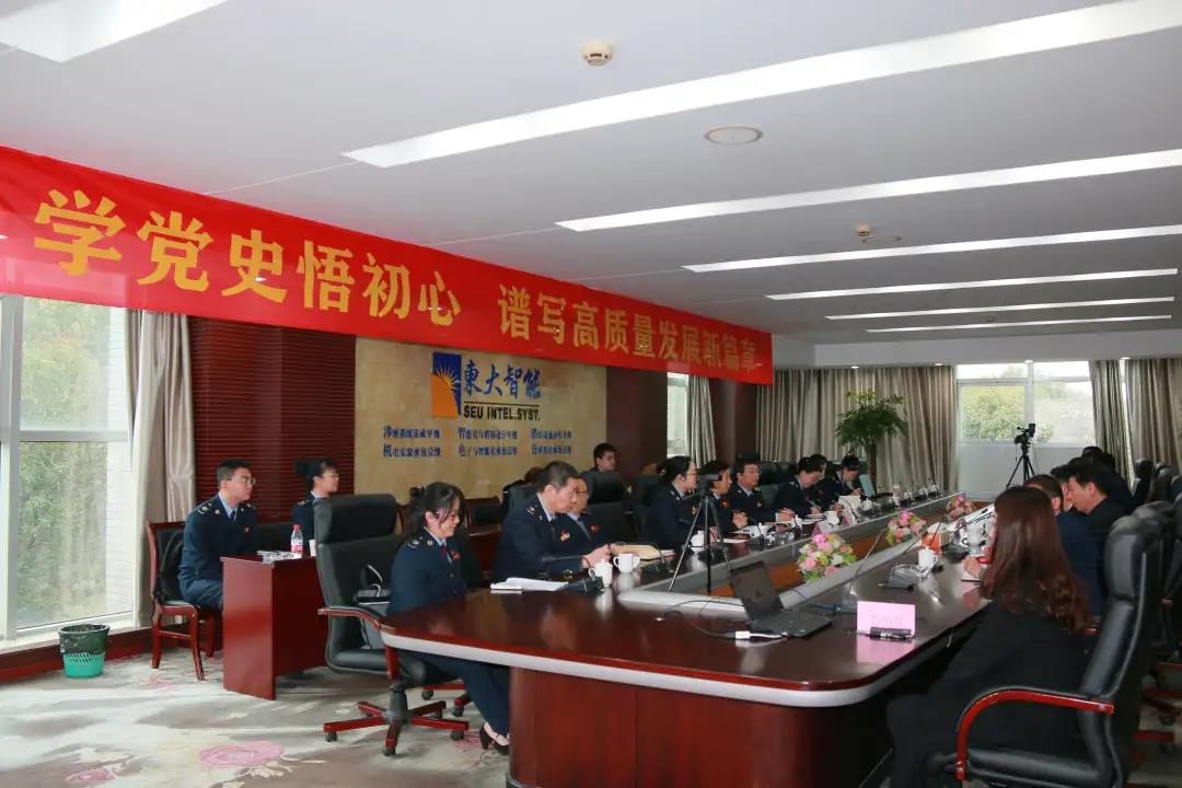 2021年3月19日,南京市税务局第二稽查局与东大智能党支部开展主题为“学党史悟初心 谱写高质量发展新篇章”的党建共建活动。徐庄管委会党工委副书记、副主任陈焕新,南京市税务局第二稽查局党总支副书记、副局长纪耀录,南京市税务局第二稽查局副局长董晓庆,东大智能党支部书记、董事长王向宏及双方党员代表近40人一同出席共建活动。